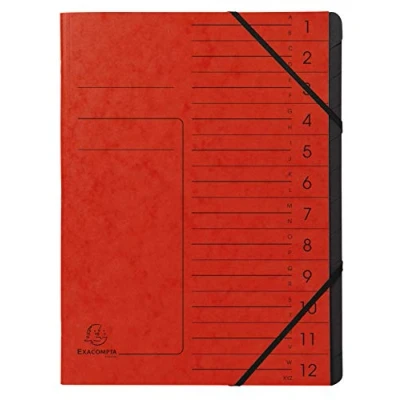 Exacompta Ref 541205E Stapled Spine Multipart File 245 x 320mm in Size, Suitable for Storing A4 Documents 12 Tabbed Sections Red Cover with Reinforced Tabs