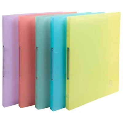 RANKING CAPACITY: 140 sheets of 80g paper Mechanical: 2 round rings, diameter 15 mm, spine 20 mm, simple opening allows you to easily store perforated documents or plastic pockets Format: 320 x 250 mm – File format: A4, suitable for filing sheets, perforated pockets and dividers Made in France Box of 20 binders in 5 assorted colours: pastel blue, coral, yellow, purple, pastel green