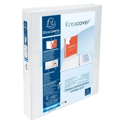 RANKING CAPACITY: 230 sheets of 80g paper MECHANICAL: 2 x 25 mm D-rings - 47 mm spine for perfect alignment of sheets and dividers Size: 320 x 277 mm. File format: A4 maximum, it fits all documents Easy to customize with KREAMAN on the Exacompta website - Made in France - FSC certified Box of 10 binders in white