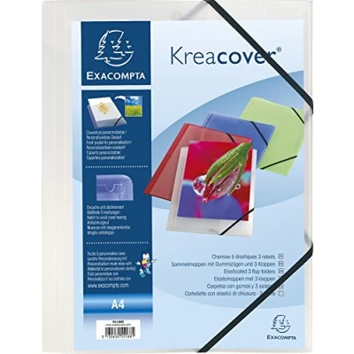 Exacompta Ref. 55188E Box of 25 Kreacover elastic folders pockets with 3 flaps in translucent polypropylene dimensions 24 x 32 cm for A4 format documents colorless