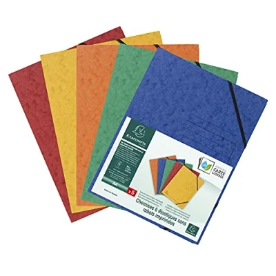 Exacompta Ref 555410E Elasticated Folder 240 x 320mm in Size, Suitable for Holding A4 Documents, 355gsm Mottled Pressboard, Straps Assorted Colours (Pack of 5)