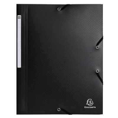 Exacompta Ref 55701E Carton of 50 Opak Elastic folders 3 Flap Pockets Made Recycled Polypropylene Size 24 x 32 cm for A4 documents Black