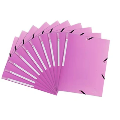 Pack of 10 folders made from soft and opaque polypropylene to protect confidential documents. With back label for identification of the folder. Ideal for your organization. Wide range of trendy, bold shades If you are looking for a folder that keeps your papers safe, then this folder from Exacompta is the right choice. It is not only of high quality, but also brightens up any desk with its colours With a high capacity of up to 200 sheets (80 g) The folders have 3 flaps and elastic band to safely transport your documents in DIN A4 format Contents: 10 x polypropylene folders. Colour: pink, opaque