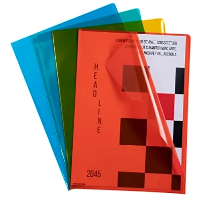 Pack of 10 High Transparency A4 Corners with Smooth Finish, Premium Quality for All Purposes. Colourful but translucent crystal, they allow identification of contents and good readability of documents. The L-shaped corner pockets are very practical for filing and displaying documents up to 20 pages. The cover thumb cut makes it easy to open, classify and view documents. Material: thanks to its 12/100th grained polypropylene material, the polypropylene is durable, waterproof, lightweight, convenient to carry documents. Format: slightly larger than A4 to accommodate all types of documents. Dimensions: 22 x 31 cm Packaging: in a bag of 10 corner pockets – 100% made in France – 4 assorted colours blue, yellow, red, green