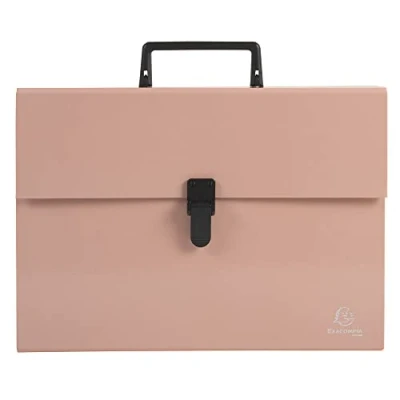 Exacompta Ref. 56767E 1 suitcase organizer with Aquarel handle multi coloured reinforced gussets clip button closure 18 compartments size 32x24 cm for A4 coral colour