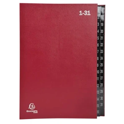 Large capacity sorter with an expandable back gusset - Ideal for filing or transporting perforated or unpunched documents Cover: rigid recycled tinted cardboard, 270 g/m2 card interior CLOSURE: without elastic bands Digital Printed Laminated Tabs Number of compartments: 32 - digital printed keys from 1 to 31 - Colour: red