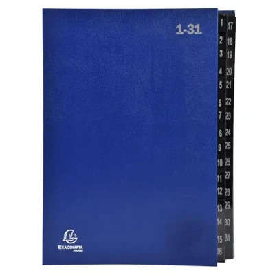Large capacity sorter with an expandable back gusset - Ideal for filing or transporting perforated or unpunched documents Cover: rigid recycled tinted cardboard, 270 g/m2 card interior CLOSURE: without elastic bands Digital Printed Laminated Tabs Number of compartments: 32 – digital printed keys from 1 to 31. Colour: blue