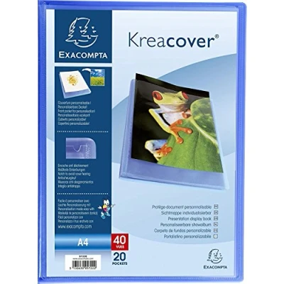 Exacompta Ref 5722E Kreacover Collection Semi Rigid Opaque PP Display Book 240 x 320mm in Size, Suitable for A4 Documents, 20 Pockets Blue (Single)
