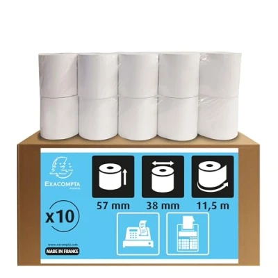 Exacompta Ref 5740120V Cash Register and Calculator Receipt Rolls (Pack of 10 Rolls) 57mm Width x 11.5m Length, Suitable for Shops, Kiosks, Cafés, Restaurants, Card Payments