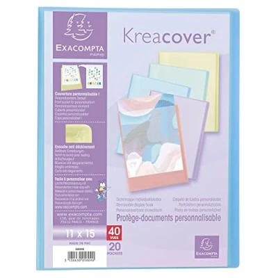 Our Kreacover pastel series takes a fresh and youthful look with new colours and gentle. This refreshes our back to school. Easy to personalize with Kreaman on the Exacompta website Lid: soft polypropylene 5/10 with personalised bag Number of views: 40 Number of pockets: 20 - Made of smooth crystal with high transparency Dimensions: 12.5 x 16.5 cm for photos and index cards in the format 11 x 15 cm. Random colours: pastel blue, coral, yellow, purple, pastel green.Tip: To select your document bag, identify the page number of your folder, select the capacity accordingly - 1 pocket = 2 views (front and back)