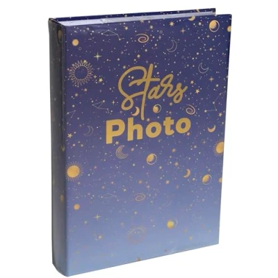 Let yourself be enchanted by our new collection of pocket photo albums with astral motifs and golden reflections The cover of the album is protected by a plastic notebook cover Inside, printed pages with space to caption each photo and 10x15cm high transparency pockets designed to protect your photos from dust, scratches and aging A 22.5 x 32.5 cm format allows you to present three shots per page Capacity: 300 photos. Format 22.5 x 32.5 cm - 100 pages