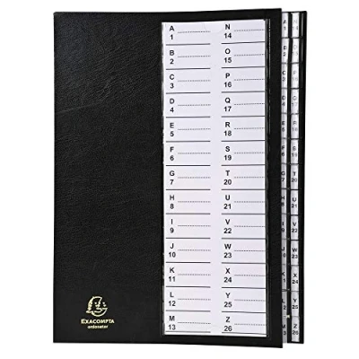 Exacompta Ref 621226E Multipart File with Rigid Cover 250 x 330mm in Size, Suitable for A4 Documents, 300gsm Ivory Pressboard, Expanding Spine, 26 Sections (labelled A Z) Black