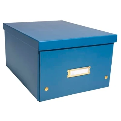 The cardboard boxes are great for storing and organising - made from recycled cardboard covered with printed and laminated paper Includes Label Holder - Dimensions: 27 x 36 x 20 cm - With Lid Class format: A4+ – thanks to the Exacompta storage box, it is possible to store everything, classify everything Colour: blue – the boxes are delivered flat for ecological reasons and are very easy to assemble thanks to the press studs Robust, the Exacompta storage boxes are FSC certified