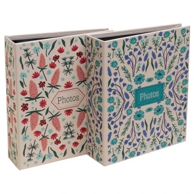 Hardcover Photo Album with Pockets for 60 Photos 10 x 15 cm Very trendy with its floral patterns. This small pocket photo album is ideal for classifying everyday photos with ease. Hardcover with 2 assorted visuals. The inner pockets are made of high transparency plastic and on a black background, keeping your photos dust free Pocket size of 14 x 16.5 cm Capacity: 60 pages - 60 photos 11 x 15 cm