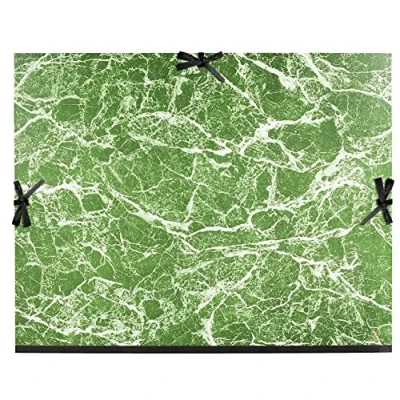 Exacompta Ref 660E Portfolio with Ribbon B2 in Size, Elastic Strap Closure, White Interior Suitable for Transporting Artwork & Documents Marbled Green