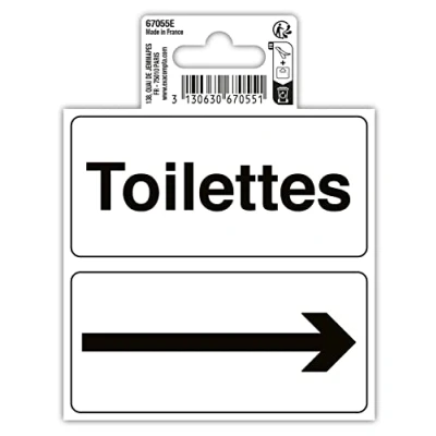 Exacompta Ref. 67055E 1 adhesive toilet pictogram with arrow PVC vinyl anti slip and UV resistant treatment Dimensions: 10 x cm Colours: black on white background
