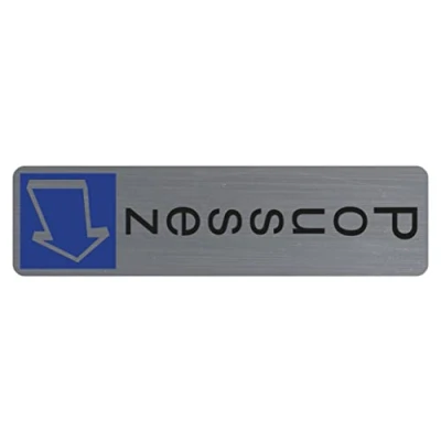 Vertical door sign. Push to clearly show users the direction of opening a door Clear and universal pictogram for a perfect understanding of all - don't let your users look for the right door again! Vertical Plaque with Arrow Symbol and Text Push - Indoor and Outdoor Use Dimensions and supports: 16.5 x 4.3 cm, printed on a 8 mm thick base, brushed aluminium look, self-adhesive, it can be easily and quickly attached to all types of surfaces Made in France, packaged with slot for hanging