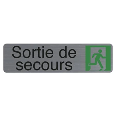 Modern and resolutely elegant design for this "Emergency Exit" adhesive door sign Clear and universal pictogram for a perfect understanding of all Rectangular sign consisting of symbol and text. Emergency exit right for indoor and outdoor use Dimensions and supports: 16.5 x 4.3 cm, printed on a 8 mm thick base, brushed aluminium look, self-adhesive, it can be easily and quickly attached to all types of surfaces Made in France, packaged with slot for hanging