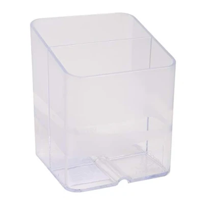 Exacompta Ref 67723D Office Pen Cube Pot 74 x 93mm in Size, Space Saving 2 Sections with for Pens, Pencils and Accessories Clear