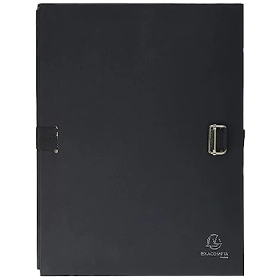 Exacompta Ref 721E Expanding Folder 240 x 320mm in Size, Suitable for Storing A4 Documents, Expands Up To 13cm , Coloured Canvas with Matching Strap Black