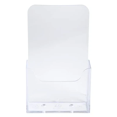 Transparent polystyrene dispenser 1 compartment for leaflet format (1/3 A4) vertical Depth per 28mm compartment. Single-piece dispenser requires no assembly. Size: 65 x 115 x 182 mm