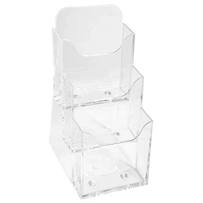 Exacompta Ref. 73158D 1 flyer dispenser on table 3 compartments Monobloc Dimensions: Prof.11.2 x width.11.5 Height.21.8 cm Format to file DL 10x21 Crystal