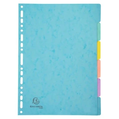 Exacompta Ref 7706E Box of 25 Aquarel Dividers in Glossy Card 400 g/m2 6 Neutral tabs A4 File Format Index Page Included FSC Certified Assorted Colours