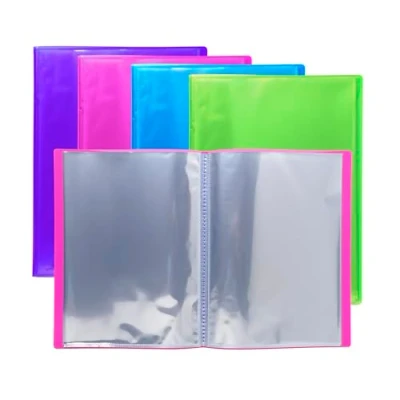In addition to the card range, Iderama PP brings a real breath of novelty to the ranking market. First range to present such an icy shine on a semi-transparent Cover: semi-rigid polypropylene 5/10 NUMBER OF VIEWS: 120 - NUMBER OF SLEEVES: 60 - High transparency smooth crystal for perfect reading of documents and comfort when inserting sheets DIMENSIONS: 24 x 32 cm for A4 documents - also known as a display book or binder, the document protectors allow you to easily flip through documents ASSORTED COLOURS: light blue, pink, lime green, purple - Tip: to choose your document cover, identify the number of pages of your folder and choose the capacity accordingly - 1 pocket = 2 views (front and back)