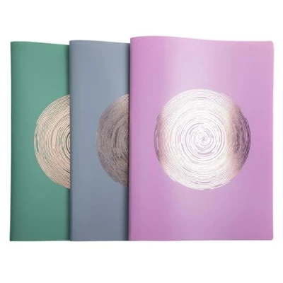 ELLIPSE a range yet designed in recycled plastic. Decorative colors enhanced by a bright and pink graphics COVER: semi-rigid recycled polypropylene with gold and rose markings NUMBER OF POUCHES: 30 - smooth crystal - NUMBER OF VIEWS: 60 DIMENSIONS: 24 x 32 cm for A4 documents - also known as a display book or binder, the document protectors allow you to easily flip through documents ASSORTED COLORS: grey, celadon green or old pink