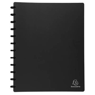 This black ring binder is equipped with removable pockets that allow you to change the direction of filing without re-inserting documents Cover: 8/10 opaque rigid polypropylene NUMBER OF VIEWS: 60 - NUMBER OF POUCHES: 30 - grained and repositionable Dimensions: 24.5 x 31 cm for A4 documents Colour: black