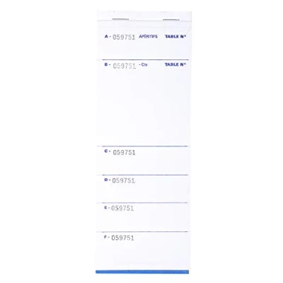 Copying pad of 50 sheets numbered. White paper notes numbered 1 to 50. Made of rigid cardboard holder allows easy to write. This coffee shop notepads to 6 detachable coupons (2 copies each) may be used in servers restaurants and cafes to note purchase orders from customers. 100% made in France.