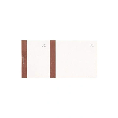 Box of 50 blocks of 100 sheets, ideal for fairs, lotteries, raffles or any other such event 2 coupons, 1 detachable Double numbering from 1 to 100 on the detachable microperforated part and on the stump Colour band available in 7 colours: bistre, blue, yellow, red, green, orange, purple Size: 6.5 x 13.5 cm Made in France - bistre coloured strip - Sold in cardboard of 50 blocks