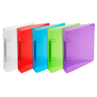 Bright and intense, the Crystal range refreshes your school or office world with its vibrant colours This binder is made of high transparency, transparent transparent polypropylene, flexible for optimised filing, especially suitable for A5 index cards or your revision cards Mechanical: 2 round rings, diameter 30 mm, spine 40 mm, spacing 80 mm, simple opening allows you to easily store perforated documents, plastic pockets and bristols Size: 23 cm x 20 cm – A5 file format for cards 10 cm x 15 cm Box of 15 binders in 5 assorted colours: blue, crystal, red, green, purple