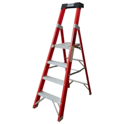 Excel Electricians fibreglass step ladder 3/4/5/6/8 Tread EN131 Heavy Duty 6 Treads ladder, foldable folding lightweight (4 Tread, Red Color)