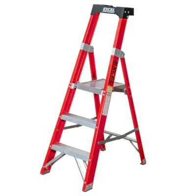 Excel fibreglass Platform step ladder 3 Tread 1.34m EN131 Heavy Duty Treads ladder, foldable folding lightweight