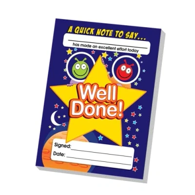 Encourage your pupils with a note that is quick to write: simply add their name, sign and date it! 60 x A6 notes per pad Each Quick Note pad includes a distribution record to track who has received a note A wonderful way to send a positive message home, a great alternative to reward certificates. excellent effort notepad