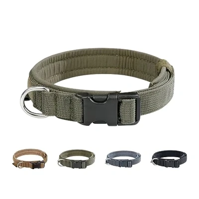 【Durable Material】This small Dog collar/no pull dog collar is made of high quality and durable nylon material with neat stitching and soft padded lining to prevent chafing for your dog's skin and hair with a comfortable fit. 【Duraflex UTX buckle】Lightweight and hard, puppy reduces the burden on the neck. The military dog collar/heavy duty dog collar has a D-Ring can be attached a dog leash to keep your dog next to you easier by your control. 【Magic sticker ID panel】There is an magic sticker ID panel on this training dog collar that can be placed for patches. Note that only one patch comes with this dog collar at random. 【3 sizes 4 colors available】Please follow the size chart (refer to the picture of the size) to measure your dog carefully before you place the order to ensure the collar is fit well to your dog. 【Note】If you encounter any problem while using, never hesitate to send email to us and we will make it all right for you.