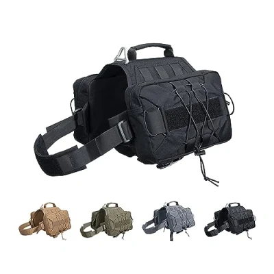 EXCELLENT ELITE SPANKER Tactical Military Dog Saddle Bag Harness Saddlebag Backpack for Medium Large Dogs(Black,L)