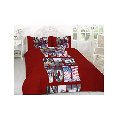 Size: King, 230 x 220 cm Feature: Excellent Quality New York Print Text Red Design Bed Design Duvet set. High-Quality Fabric Colour: Red, Material: 50% Polycotton and 50% Cotton. Created using unique finish to ensure softness and quality Machine Washable at 40ºc, Tumble Dry. Wash Dark Color Separately (Recommended)
