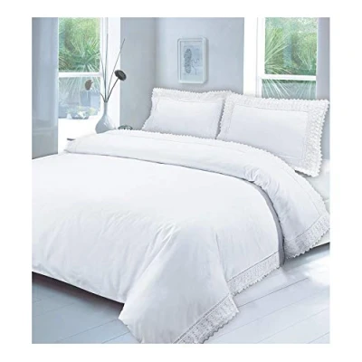 Excellent Hotel Quality King T 200 Lace White Design Duvet Cover Set Bedding with Pillowcases Size
