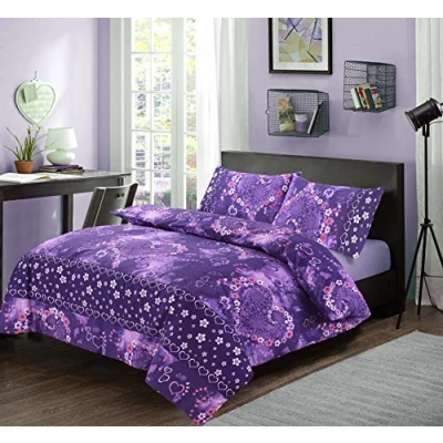 Excellent Hotel Quality Single Floral Heart Design Jasmin Plum Duvet Cover Set Bedding with pillowcases Size