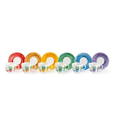 Excelsa 62373 Cactus Set of 6 Coffee Cups with Saucer, Porcelain, Multi Coloured