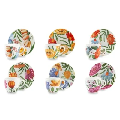 6-piece coffee service: The Blooming coffee cup set by Excelsa consists of 6 cups made of decorated porcelain; it is ideal for ending meals with a good coffee in an elegant and original service DESIGN: The Blooming coffee service by Excelsa celebrates the freshness and vitality of flowering days with its delicate decorations that recall the vibrant colours of flowers in full bloom. Each cup and saucer is a real work of floral art, bringing the joy and lightness of the season straight to your table and turning every meal into an unforgettable floral experience. DAILY USE: This coffee cup set is ideal for everyday use as it can be washed in the dishwasher without losing its colours. In addition, the cups can be used in the microwave to heat drinks easily and quickly. Composition: the coffee set includes 6 porcelain glasses with Blooming decoration Ø 6 cm, height 5 cm and a capacity of 70 ml. The set also includes 6 practical saucers, diameter 10.5 cm and height 1.5 cm