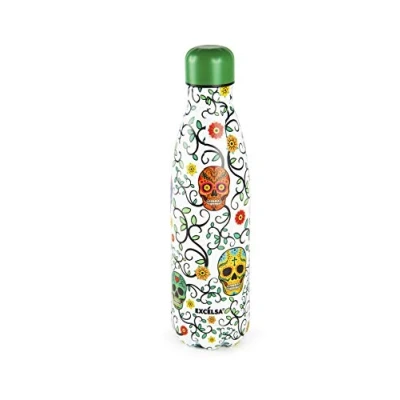 Excelsa Calavera Thermal Bottle 0.5 L, Steel, White with Decoration, Capacity: 500 ml