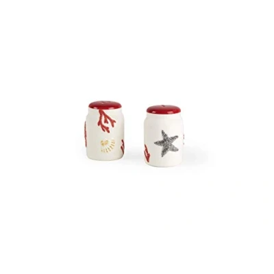 Excelsa Coral Salt and Pepper Set, Ceramic, White Red, 2 Pieces
