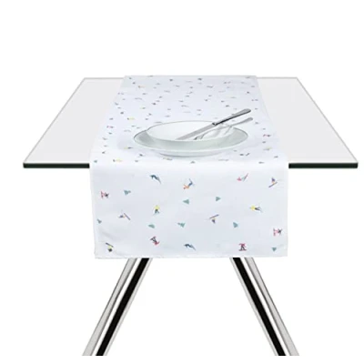 AmazonChristmas runner made from 100% panama cotton, fabric 200 grams per square meter Size: 140 x 45 cm. Runner thickness: 0.3 cm. White background with Cortina decor Machine washable max 40°C. Do not dry clean. Do not bleach. Iron at low temperature. Do not dry