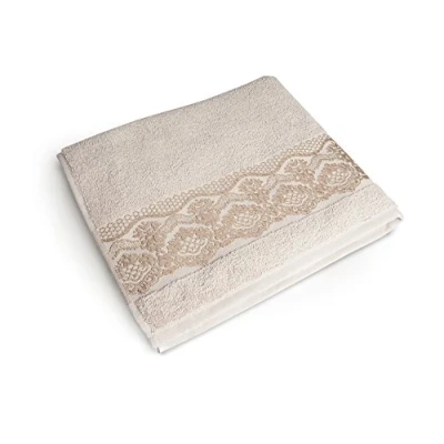 High absorbency soft pure cotton Luxury borders and frill Jacquard lace effect Hypoallergenic Dimensions: 60 x 100 cm Colour: écru