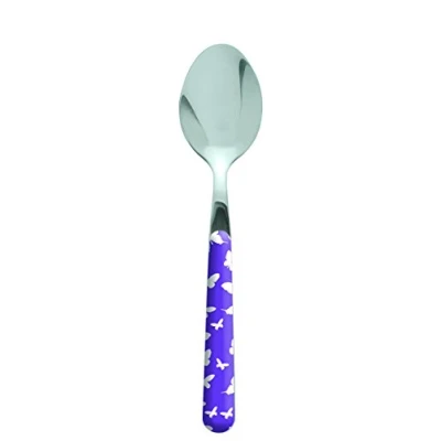Thickness: mm.1.8. Length: cm.19 Material: 18/0 stainless steel. AISI 430 Colour: Purple with Butterfly Decoration Dishwasher safe