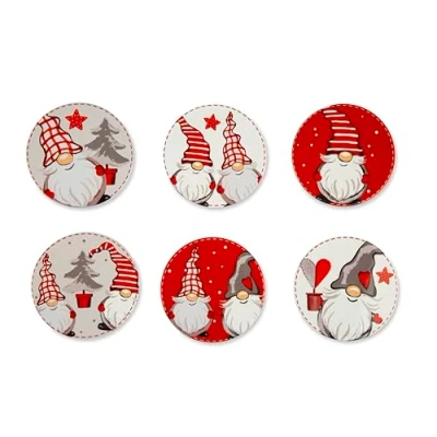 Excelsa Gnome Coasters Set of 6 is the perfect accessory to add a splash of colour to your table and meal times this holiday season With a diameter of 10.5 cm. and at a thickness of 1 cm, the coasters are suitable for any type of glass and easy to store in any space of your kitchen The coasters are made from ceramic top and cork on the bottom, which prevents slipping of the coaster, provide reliable protection for your table, preventing stains or damage that liquids contained in the glasses can leave on your furniture. Thanks to the heat-resistant materials up to 200°C, the coaster is perfect for serving hot drinks The coaster set is very practical and perfect for everyday use. Lightweight and easy to clean, just wipe away stains and any liquid residue The set consists of 6 different decorations inspired by the famous Gnome collection of Excelsa