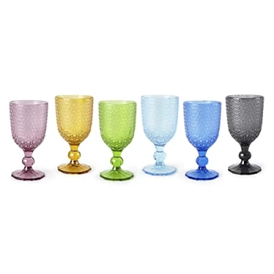 Set of 6 glasses perfect for enjoying good wine but also for quenching thirst with drinks and water. Multi-coloured glasses made from coloured glass paste to ensure the colour tone even after numerous washes. The product is handmade by hand. The dimensions of cm. 8 x 8 x H.16 and the capacity of 300 ml. They make them ideal for any occasion, from a night out with friends to a quiet family dinner. Dishwasher safe for effective cleaning and sanitisation.